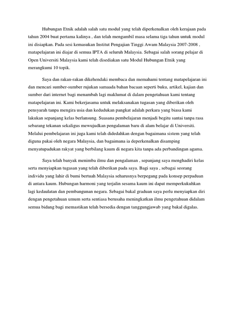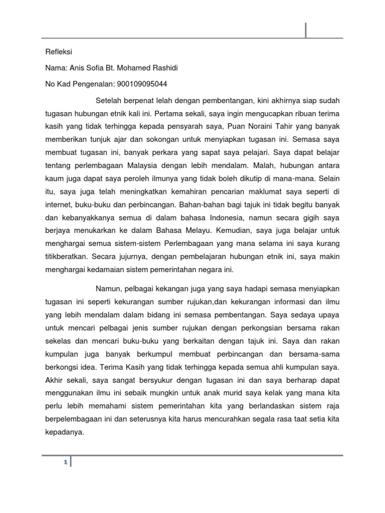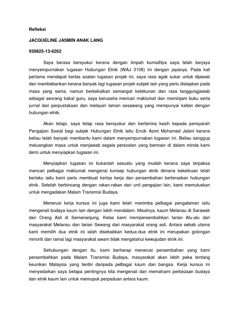 Refleksi Hubungan Etnik Docx Refleksi Buat Pertamanya Saya Panjatkan Dengan Penuh Rasa Kesyukuran Kerana Telah Berjaya Menyiapkan Tugasan Hubungan Course Hero