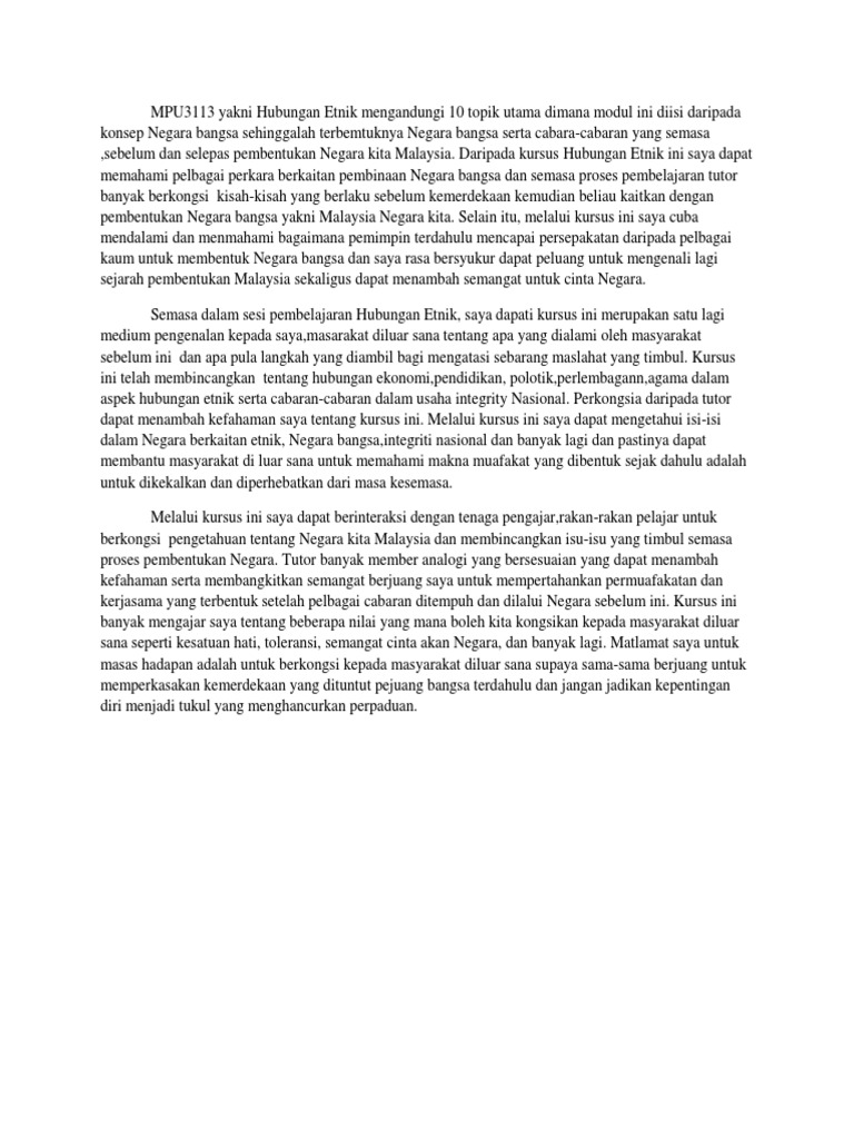 Mpu3112 Hubungan Etnik Reflektif Report Upload Kluster Perniagaan Amp Pengurusan Semester Mei Studocu